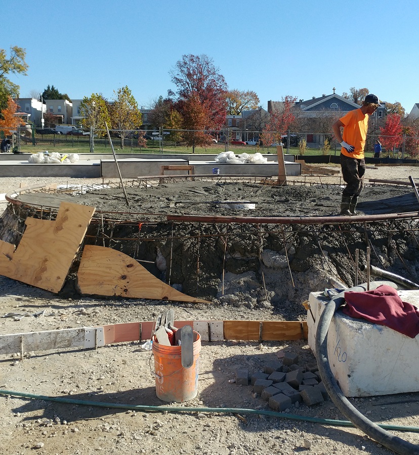 Baltimore Skate Park uses a custom concrete mix to get the best blend of durability, safety, and precision for the custom forms needed for the jumps and other trick platforms used in this skate park.